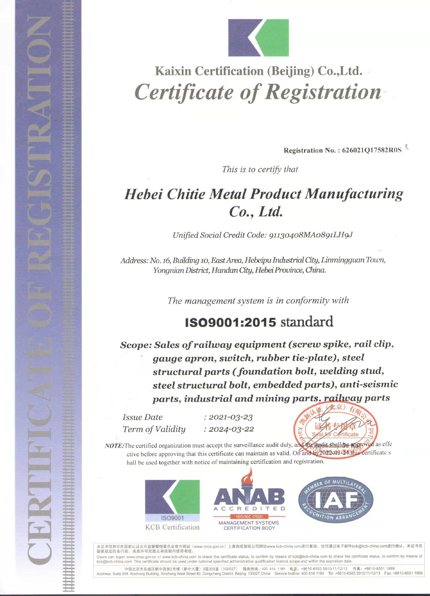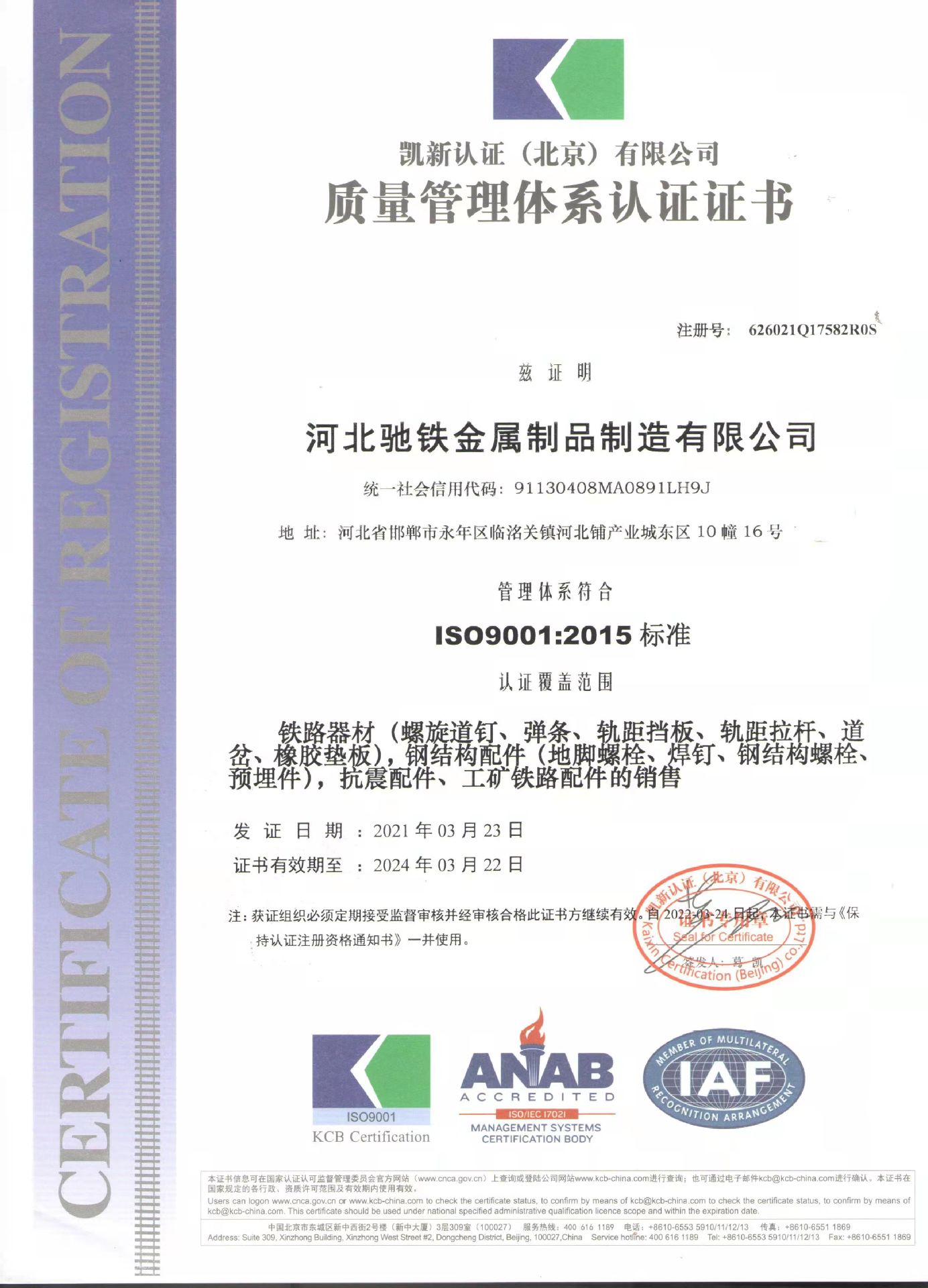 主要產品:鐵路配件、行車配件、工礦配件、魚尾板、道釘、壓軌器、軌道壓板、軌距拉桿、護軌扣板、T型螺栓、魚尾螺栓、彈條、軌距擋板